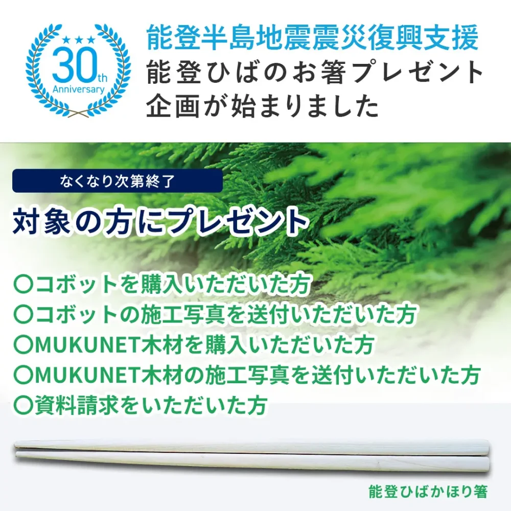 ※重要※ 30周年記念。能登ひばのお箸プレゼント企画が始まりました。